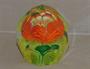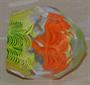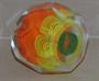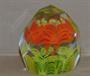 Skleněné těžítko - velký oranžový květ a žluté vlnky při základně, brus do fazet. Krásná sklářská práce z 1. čtvrtiny 20. stol. Asi severní Čechy.