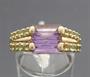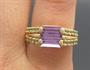 Moderní designový prsten z 375 zlata (9 karát) s centrálním velkým broušeným amethystem a malými broušenými amblygonity na stranách, puncováno 375 (viz foto). Velikost 16 / 56, váha brutto cca 4,5 g, dobrý stav bez poškození, jen mírné známky stáří a používání.