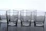 sada 6ti tenkostěnných sklenic s řezanými motivy pražských architektonických památek, dna broušená, každá nese signaturu - snad J.H.1959, výška 9 cm, původní etue