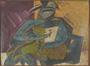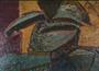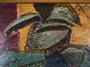 Abstraktní kompozice - Rytíř s květinou, pastozní olej na kartonu,