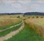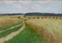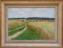 Olej na kartonu 35 cm x 55 cm. Signováno vpravo dole. Polní cestou mezi zlatavým obilím se snopy v pozadí. Světlý profilovaný rám se zlatými lištami. Československo 1930 - 1940. Celkový rozměr s rámem 49 cm x 64 cm. Adolf Tužínský/Tužina (nar. 1907).