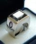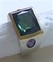 Starý masivní prsten z 925 stříbra (10 g) a 750 zlata (2,5 g), s velkým centrálním broušeným kamenem turmalinové barvy, produkce Daniel Swarovski, Paříž, značeno (viz foto), dvakrát puncováno, pravděpodobně kolem r. 1980. Vnitřní průměr 1,8 cm, velikost kamene cca 1,4 x 1,2 cm, dobrý stav bez poškození, běžné známky stáří a používání. Ryzost a váha potvrzeny puncovním úřadem.