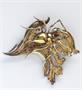 Stará velká brož ze zlaceného 925 stříbra, pavouk na podzimním listu, značeno 925 a monogram šperkaře (viz foto). Rozměr cca 6 x 5,5 cm, váha netto 22,95 g, dobrý stav bez poškození, běžné známky stáří a používání. Ryzost a váha potvrzeny puncovním úřadem.