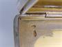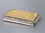 Stará art deco krabička, asi tabatěrka (na šňupací tabák ?), ze stříbra, vnitřek pozlacen, víčko s ručně rytým reliéfem z přírodního materiálu (radši nejmenovat), první polovina 20. století, neidentifikovaná stříbrná punce a monogram výrobce AB (viz foto). Rozměry 7,6 x 4,6 cm, váha brutto 54 g, dobrý stav bez poškození, jen mírné známky stáří a používání, patinu stáří lze odstranit vyčištěním.
