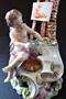 Porcelán bílý, malovaný, glazovaný, zlacený. V rokokovém stylu. Vysoký reliéfně tvarovaný podstavec se zlacenými rokaji, reliéfními kvítky s listy. Na čelní straně, sedící andílek držící v ruce štětec. Opodál ležící malířská paleta, portrétní bysta, svitek s kresbou hlavy z profilu. V zadní části umístěné malířské štafle, s upevněným obrázkem krajiny. Opřené o vysoký kmen, s větvemi a listy na vrcholu. Místy poškozená. Značená zespodu modře malovanou značkou Vídně. Dle modelu vídeňské porcelánky z 18. století. Zhotovené v Německu v druhé polovině 19. století. Výška 31 cm, šířka 13 cm.
