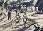 Alois Moravec: Na návsi, Lept na papíře o velikosti štočku 19,5 x 24,5 cm, sign.v pravo dole. Celková míra 37 x 40 cm.