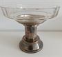 Nástolec, stříbřená alpaka, vložená fasetovaná mísa z čirého skla, 10. léta 20. století, výška 24 cm