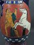 Keramika, glazovaná, vyobrazení mužské postavy a koně, výška 35cm, šíře 17cm, značeno-viz foto, nepoškozeno, bezvadný stav.
