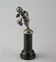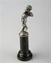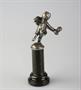 soška amorka s pohárkem, postříbřená kovová kompozice, mramorový sokl, střední Evropa, kolem r. 1880, drobné stopy času; výška 10,5 cm
