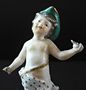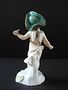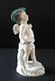 pruhem látky kolem boků,křidélky vzadu a s trojrohým kloboukem na hlavě.Podstavec kulatý,mírně vyvýšený,zdobený rokaji.Figurka je místy poškozená.Značeno zespodu-Vídeň mezi lety 1749-1827.Výška 11 cm,šířka 6 cm.