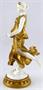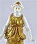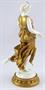 V historizujícím stylu konce 19. století. Bílý a zlacený porcelán. Kráčející antická dívka ve zlatém vlajícím šatě, se zlatou čelenkou ve vlasech. Klenutý podstavec zdobený reliéfním zlatým pásem s ornamentem meandru. Značeno zespodu : modré písmeno N s korunkou napodobující značku slavné porcelánky v Neapoli. Ernst Bohne Söhne, Rudolstadt. Německo 1860 - 1920. Výška 24 cm.