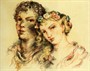 Antonín Procházka (5. 6. 1882 Vážany – 9. 6. 1945 Brno) – Dvojice Štětcová kresba, barevné tuše a akvarel, papír, výřez pasparty 40 x 50 cm. Signováno vlevo dole tužkou ligaturou AP. Nedatováno, pravděpodobně po r. 1920. Typická Procházkova práce - studia u Schwaigra a Švabinského, zlatá medaile z Paříže, posmrtně titul národního umělce. Jeden z nejvýznamnějších českých malířů doby. Vystaveno v Prácheňském muzeu v Písku 2023, publ. v katalogu k výstavě Pojďme mezi lidi. str. 173.