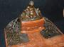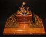 Kalamář figurální secesní, zač. 20. století. Bronz a slivenecký mramor, zhotovil Franta Anýž, Nesignováno, ale analogické práce z této psací soupravy a signované se vyskytují na trhu s uměním. Anýžovo autorství zaručuji. Velký a těžký kalamář ve velmi zachovalém stavu. Rozměr základny 32 x 21 cm, výška 19 cm.