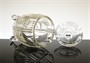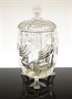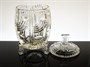 Velice dekorativní a stylová dóza stojící elegantně na třech nožkách z první třetiny minulého století, provedená z masivního ručně lisovaného čirého skla s hlubokým geometrickým reliéfem. Dózu ve výrazném tvarosloví Art - Deco pravděpodobně vyrobila sklárna Josef INWALD Dubí. Dobrý stav, rozměr - v. 23cm, prům. 12cm