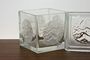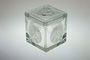 Dóza na drobnosti dekorovaná medailony s Putti, ptáčkem a růží. Částečně matované čiré sklo tlačené do formy je fazetově broušené. Autor návrhu Adolf BECKERT pro firmu Curt SCHLEVOGT jako součást kolekce luxusního skla INGRID. Kolem roku 1930 provedla sklárna Heinrich Hoffmann. Dobrý stav, rozměr - v. 9 x 8 x 8cm