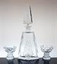 Luxusní prvorepubliková likérová souprava - karafa a pár frťánků z masivního čirého celoplošně fazetově broušeného skla, které je dekorované matovaným hlubokým reliéfem. Stylová nápojová souprava na cenný drink ve výrazném tvarosloví ART - DECO. Provedly sklárny v severních Čechách ve 30-40tých letech. Dobrý stav stav, rozměr - karafa i se zátkou - v. 27 x 11 x 7cm, frťánek - v. 6cm, prům. 6,5cm