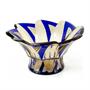 Art deco mísa z probrušovaného kouřově a kobaltově zbarveného skla s ornamenty, velmi dekorativní. Mísa je původem z Čech ze 30. let 20. století - Státní odborná škola sklářská Kamenický Šenov. Výška 12 cm, průměr 25 cm.