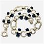 Stylově čistý náramek vyrobený ve stylu Art deco, ozdobený tmavě modrými bakelitovými aplikacemi. Délka 18,5 cm. Materiál obecný kov.