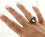 Bílé osmnáctikarátové zlato, přírodní akvamarín, přírodní diamanty. Období a styl: art deco. Ryzost Au 750/1000, celková hmotnost 6,20 g. Atraktivní art deco prsten z bílého osmnáctikarátového zlata s velkým ručně broušeným přírodním akvamarínem. Hlava a ramena prstenu jsou zdobená jemným prořezávaným dekorativním ornamentem, osázeným šesti přírodními diamanty výbrusu achtkant o hmotnosti 0,05 ct. Hladká obroučka prstenu v dolní části v minulosti zvětšená. Značeno platným českým puncem. Evropa 1925 - 1940. Velikost prstenu 50 - 51.