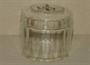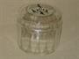 Dóza z čirého skla, broušená do fazet, víčko malované švarclotem - krysař a děti.