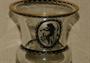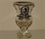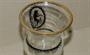 Sklenice na noze, čiré sklo, noha broušená, kupa malovaná švarclotem, místy zlacení.