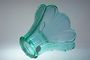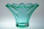 Luxusní broušená váza ve tvaru otevřeného květu z alexandritového bohatě do mnoha fazet broušeného skla ( alexandritové sklo je na denním světe do odstínu lila a při umělém osvětlení je modrozelené ). Dochovaná původní nálepka sklárny F.T. pravděpodobně některá z uměleckých krystalerií v okolí Železného Brodu v první třetině minulého století. Dobrý stav, rozměr - v. 15,5cm, prům. 22cm