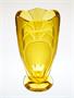 Luxusní váza v krásném barevném odstínu skla Amber, ve tvaru květu, celoplošně zušlechtěná broušeným dekorem. Stylový skleněný objekt ve tvarosloví Art - Deco s geometrickým částečně matovaným ornamentem, provedla umělecká krystalerie Rudolf HLOUŠEK Železný Brod ve 30-40tých letech. Dobrý stav, rozměr - v. 23cm, prům. 12cm