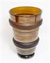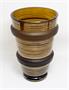 Větší masivní váza v odstínu skla Topas, které je bohatě dekorované zlatým lineárním dekorem a zušlechtěné matováním. Styl Art Deco z 30-40tých let. Provedla sklárna Bratří Podbirů Skalice u Nového Boru. Dobrý stav (svislé tmavé plošky jsou jen zrcadlení při fotografování), rozměr - v. 23cm, prům. 16cm