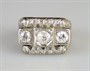 zlatý prsten s 29 diamanty briliantového brusu o celkové hmotnosti cca 1,45 ct, kameny zasazené v palladiu, Au+Pd btto 4,64 g/585/1000, západní Evropa, kolem r. 1935; atest Puncovního úřadu; velikost prstenu 50