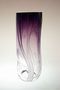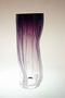 Velká masivní váza z krásně barevného ametystového skla, které přechází v čiré a po celé ploše vázy je broušený geometrický dekor. Váza má i velmi zajímavý organický tvar. Dekorativní soliter ze 70-80tých let minulého století. Rozměr v. 30cm, prům. 16cm, hmot. 3,2kg