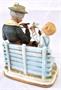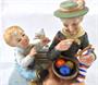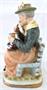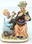 Bílý, barevný, ručně malovaný a zlacený porcelán. V romantickém stylu. Porcelánové sousoší babičky sedící na lavičce pletoucí vlněné ponožky. Vedle ní sedí její vnouček s ptáčkem v jedné jeho ruce. Oválný bílý podstavec se zlatou linkou. Neznačeno. Evropa minulé století. Výška 18 cm, šířka 14 cm.