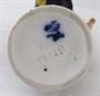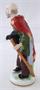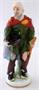 Bílý, malovaný a zlacený porcelán. Soška stojícího holohlavého muže s plnovousem, v roztrhaném barevném oblečení, s žebráckým kloboukem v ruce. Kulatý podstavec se zlatou linkou. Značená zespodu : modré písmeno M, písmena VS v erbu s korunkou, vtlačená čísla 1722, 6, písmeno N. Schwarza-Saalbahn, E. & A. Müller Porzellanfabrik založeno roku 1890. Německo 1890 - 1930. Výška 17,5 cm.