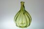 Velmi staré a vzácně se vyskytující lesní sklo - půvabná skleněná karafa na víno foukaná do formy s hlubokým žebrováním a nataveným ouškem. Odhaduji dobu vzniku mezi lety 1700-1800, autenticitu stáří skla potvrzuje množství drobných i větších zatavených bublinek a nečistot uvnitř skloviny. Vespod je heft od sklářské píšťaly. Dobrý stav ( nejedná se o repliku! ), rozměr - v. 20cm, prům. 14cm