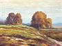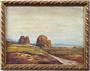 Olej na kartonu 34 x 45 cm. Signováno vpravo nahoře. Pohled na podzimní krajinu s pastvinami, pěšinou a stromy na horizontu. Československo 1930 - 1940. Celkový rozměr s rámem 40 x 50,5 cm.