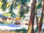 Kombinovaná technika na papíře (tužka, akvarel a křídy) , signováno vpravo dole, rámováno pod sklem. Velikost malby 27 x 39,5 cm, 34/47 celkem včetně rámu. Zaskleno.