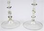 Čiré ručně foukané a tvarované sklo, barevná sklíčka. Ve stylu benátských pohárů 17. století - Facon de Venise. Autor: Jos Böhm (1922-1992). Vysoké poháry na štíhlých spirálovitých nožkách. Spirály jsou dekorované barevnými sklíčky ve tvaru kuliček. Holandsko, Utrecht 1960 - 1980. Výška jednoho poháru 34 cm, výška druhého poháru 37,5 cm.