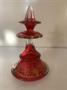 Biedermayer flakon z narůžového skla -rosalin se zlatou malbou listu,Výška 17 cm ,šířka základny 10 cm,