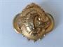 Brož zhotovená ze silně zlaceného obecného kovu v 19. století, rozměr 3,6 x 3,2 cm. Ve velmi dobrém stavu.