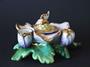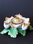 Starý kalamář z porcelánu dekorovaného barvami a zlatem na glazuře, plastický dekl, držák na pero a vyjímatelná nádobka na písek (Sandstreuer), zespodu pod jednou nožkou těžko čitelná značka (viz foto), střední Evropa kolem r. 1850 . Rozměry 17 x 15,5 x 8,5 cm, dobrý stav bez poškození, drobné oťuky na horní hraně nádobky, běžné známky stáří a používání, zlacení celkově velmi dobře zachováno. (705)
