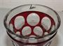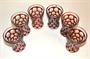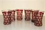 Biedermeier sklenice 1850.Sklo čiré broušené zdobeno rubínovou lazurou. Jedna sklenice má na horním okraji otluk. Celkový rozměr 13cm x 9cm.