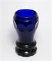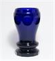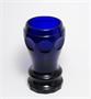 Masivní kobaltově modré sklo z období Biedermeieru kolem roku 1850, bohatě brusem dekorovaná sklenice stylového tvaru stojící na plné fazetově broušené patce a vespod je také broušená hvězdice. Pravděpodobně provedly krystalerie v severních Čechách. Dobrý stav, rozměr v. 14,5cm, prům. 8,5cm