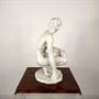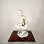 Biskvitová figura ženy v podřepu. V bílém provedení.