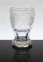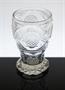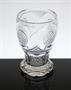 Velmi stará sklenice stojící na široké patce pocházející z poloviny 19. století. Celoplošně brusem zušlechtěné čiré sklo se čtyřmi jemně řezanými medailony, vespod je broušená hvězdice. Luxusní nápojové sklo z období Biedermeieru. Dobrý stav, rozměr v. 13cm, prům. 9cm