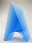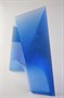 působivý objekt z modrého taveného skla, broušeného, matovaného a leštěného, kolem r. 1995; výška 29 cm, šířka 20,5 cm, hloubka 6 cm