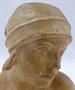 Patinovaná sádra. Období a styl první republiky. Nesignováno. Portrétní bysta mladé dívky se šátkem uvázaným vzadu na hlavě. Stav odpovídající staří sochy s nepatrnými oděrkami. Československo 1930-1940. Výška 14 cm, šířka 14 cm.