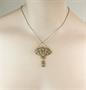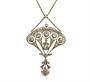Luxusní, velice detailně zpracovaný náhrdelník z období Art deco osazený brilianty starého brusu o celkové hmotnosti cca 2 ct. Náhrdelník je vyroben ze zlata ryzosti 580/1000, přítomno je i stříbro ryzsotí 980 a 950/1000. Celková hmotnost šperku 12,80 g. Délka samotného závěsu 4,5 x 3 cm. Starý autentický šperk ve výborném stavu. Osvědčení Puncovního úřadu.