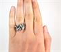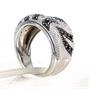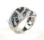 Moderní prsten s černými a bílými brilianty celkové hmotnosti 0,65 ct. Zlato ryzosti 585/1000. Velikost prstenu cca 55, celková hmotnost 7,5 g.