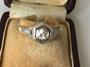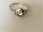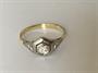 Klasický briliantový prsten, zlato 585/1000, centrální briliant 0,25 karátů, 2 drobné brilianty po stranách, kameny zasazeny v platinové slitině, celková hmotnost prstenu 1,95 g, velikost prstenu 55, uložen v původní krabičce.