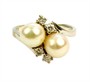 Zlatý prsten s přírodními diamanty kulatého briliantového brus o hmotnosti 0,20 ct velmi dobré kvality a se dvěma perlami o průměru 7,5 mm. Bílé zlato o ryzosti 14 karátů 590/1000 o celkové hmotnosti 6,02 g, velikost prstenu 60. Znalecký posudek o pravosti kamenů přiložen.