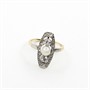 Půvabný starožitný zlatý prsten je osazený přírodními diamanty briliantového brusu o celkové hmotnosti 0,26 ct a perlou,
